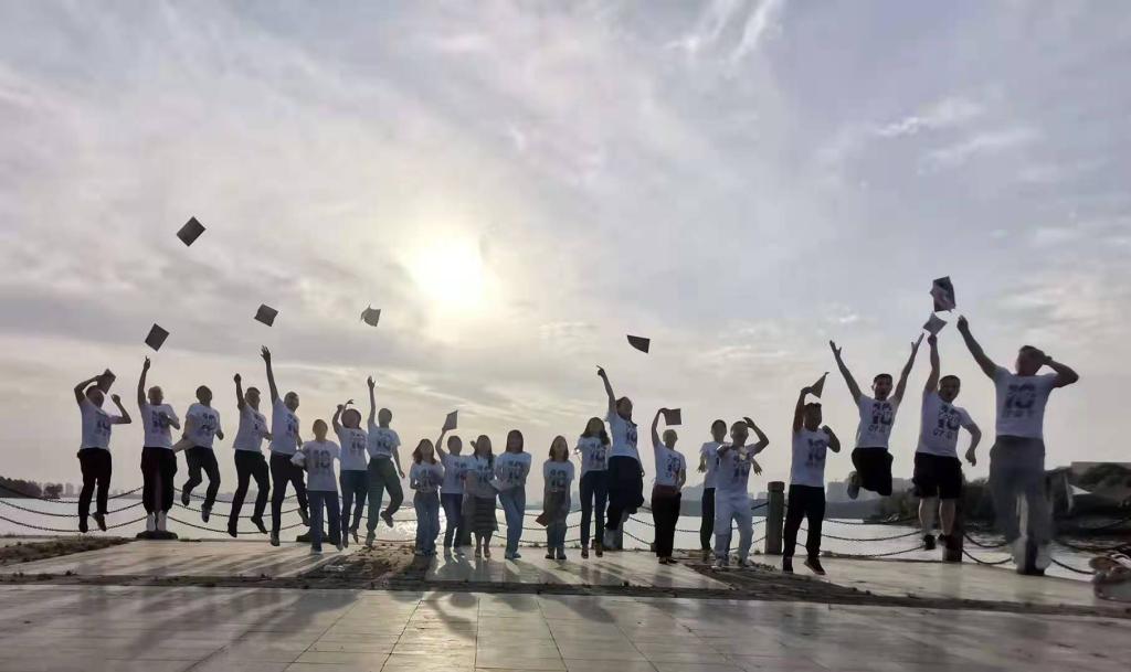 黄昏渐临,员工们环游校园,在一片霞光中重温少年岁月。南湖的落日仍如记忆中那般美丽,田径场旁的树木依旧葱郁,曾经的少年虽已长大,但只要初心常在,就永远是少年。