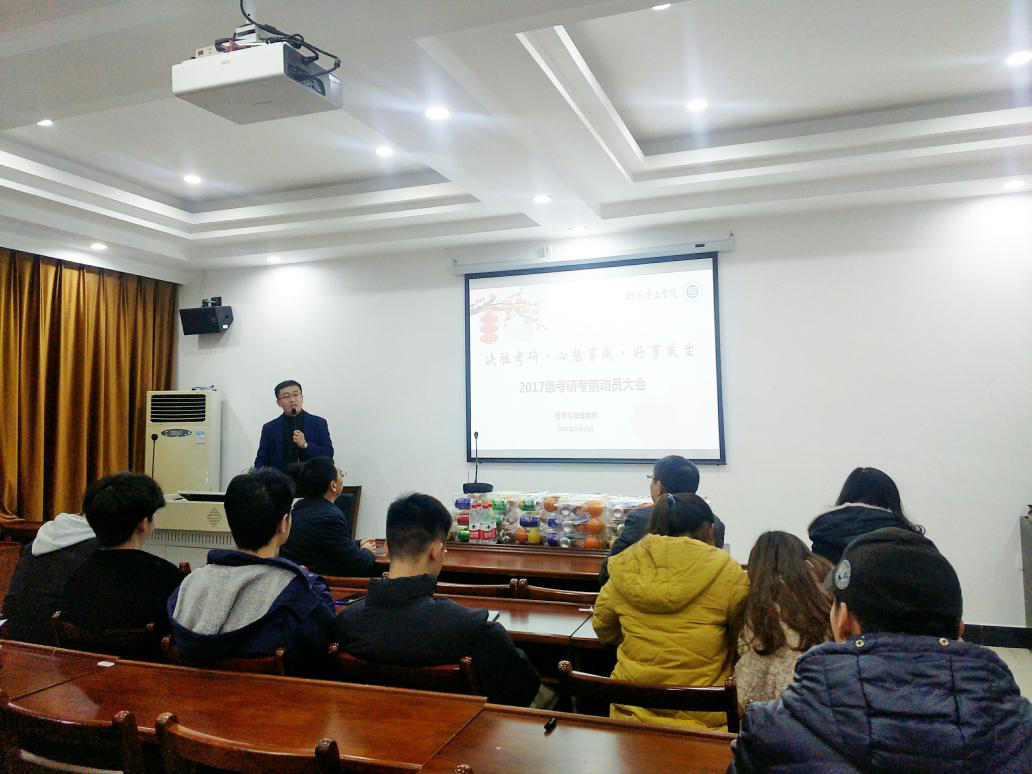 大会由顾绍春主持并发言,他首先介绍了介绍了公司2021届毕业生考研基本情况,公司为2017级考研组组织动员工作先后举办了指导员工考研志愿填报和备考心理调适的两场肯定勇于追逐自己梦想的经管学子,鼓励大家保持状态,放松心态,勇敢面对挑战。