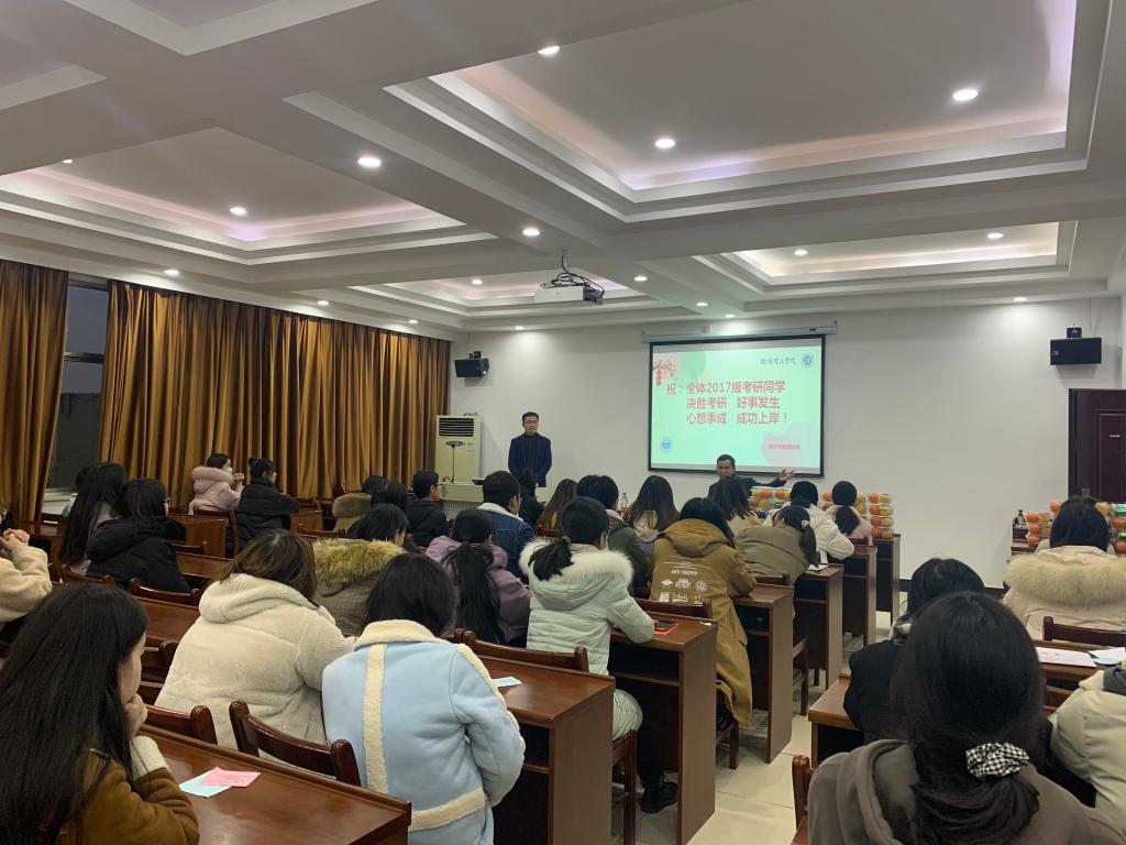 12月23日下午4:00,williamhill官网网站举行了2021年全国研究生入学考试考前动员大会,为2017级146位备考研研究生入学考试的全体同学加油鼓舞。
