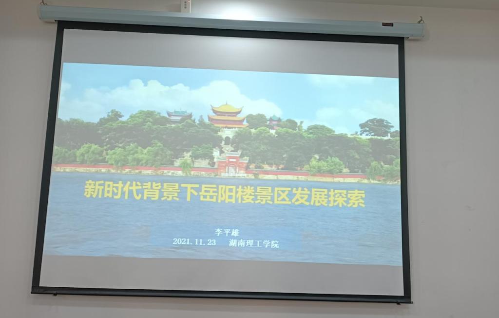 讲座伊始,李主任从社会矛盾关系的转变、文旅融合的深入、高质量发展的要求、疫情常态化的挑战四个方面分析了文旅行业新时代的特点。其次,李主任以举例的方式指出,岳阳楼景区的探索实践包含了:因势利导,向高质量发展迈进;尊重历史,严谨解读文化内涵;以文为根,做好旅游产品开发;以文为魂,做大特色文创产业;以文为脉,做活旅游营销市场。最后,他做出总结,适应新形势,顺应新时代,促进岳阳楼景区高质量发展,不仅是对千古名楼的尊重,也是对优秀传统文化的尊重,更是对游客的尊重。