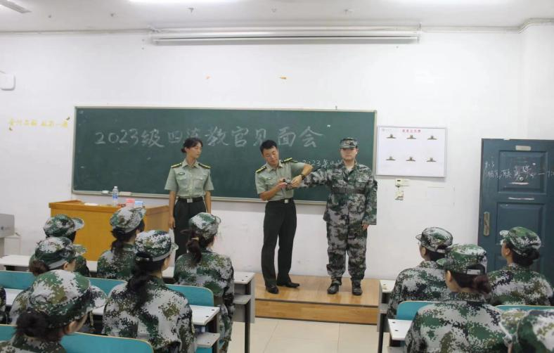为加强2023级新生军训安全教育,确保军训任务圆满完成,9月10日晚,williamhill官网网站分别在8410、8404、8510、8504教室开展了2023级新生军训教官见面会。