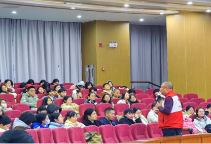 在授课现场,红十字讲师以亚洲青年羽毛球锦标赛中的真实案例为引,结合救护理论,向大家阐述了应急救护“黄金四分钟”的至关重要性。随后,红十字讲师们通过深入浅出地讲解,使同学们掌握了基础的急救理论知识,包括心肺复苏术(CPR)的操作流程、AED的紧急使用技巧以及常见急症和意外伤害的初步处理方法。这些知识对于提高个人自救互救能力、降低突发事件伤害程度具有关键作用。