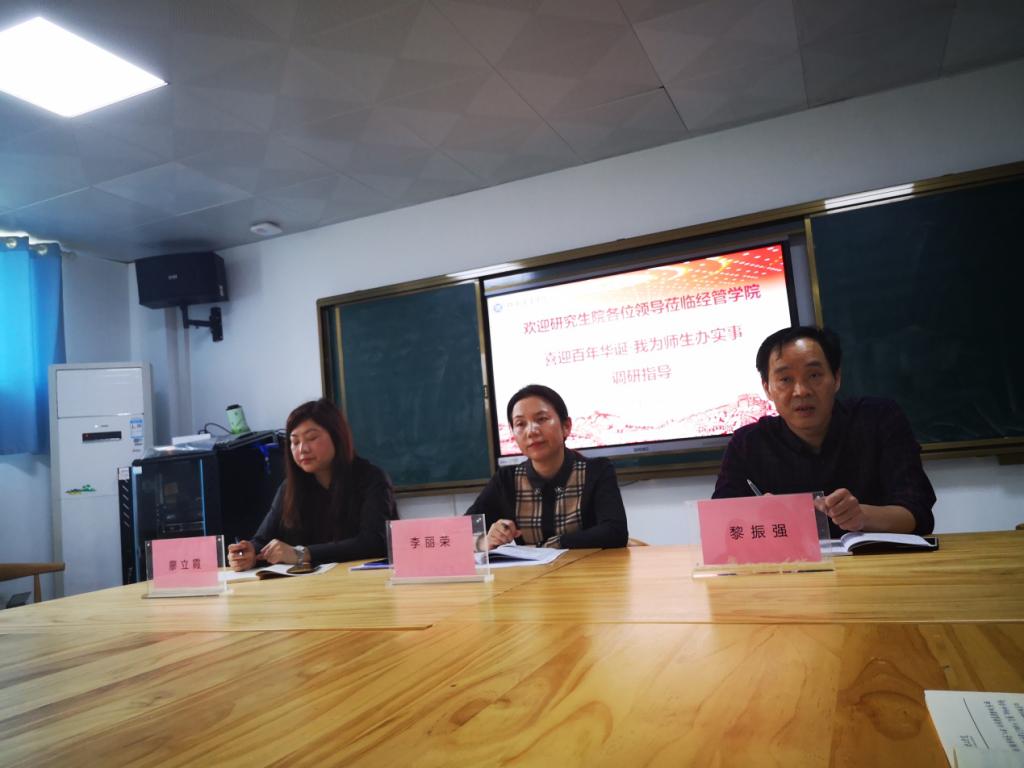 为学深悟透习近平新时代中国特色社会主义思想,深入贯彻党的十九大精神,切实解决学生最关心、最急切的问题,着力提升公司服务效能,5月6日下午两点半,williamhill官网网站于8栋教学楼8413教室召开“喜迎百年华诞•我为师生办实事”调研座谈会,由研究生公司党总支书记李丽荣带队,研究生院黎振强副经理,廖立霞老师参加了座谈。