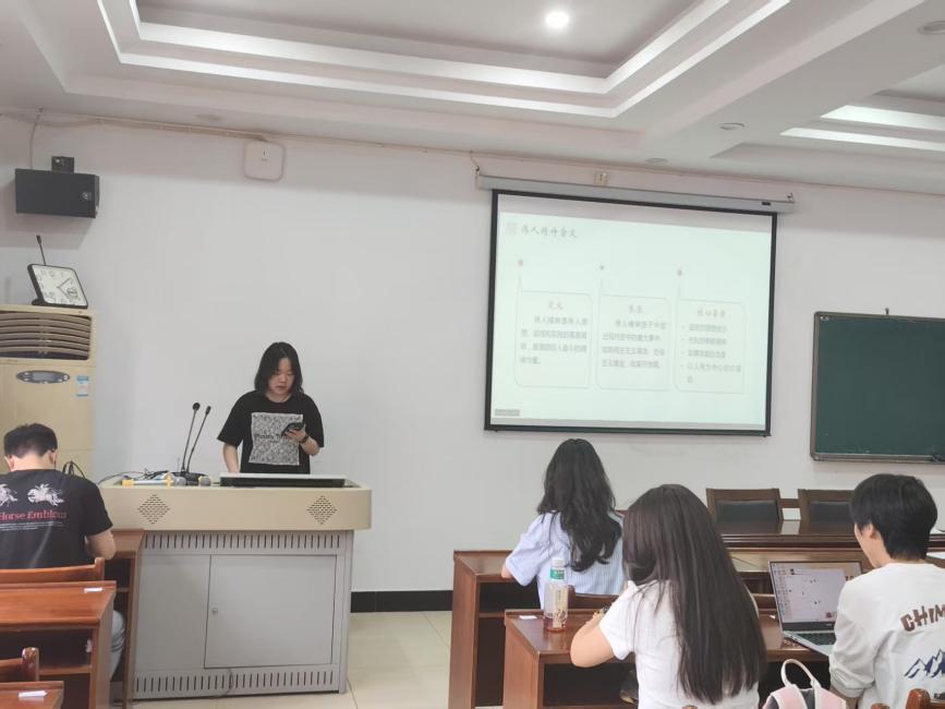 会议伊始,韩金佚同学带来 “传承伟人精神,强化使命担当” 专题讲座。她从历史和现实两个维度出发,深刻阐述伟人精神对青年成长的激励作用,强调坚定理想信念、无私奉献及担当精神的重要性。