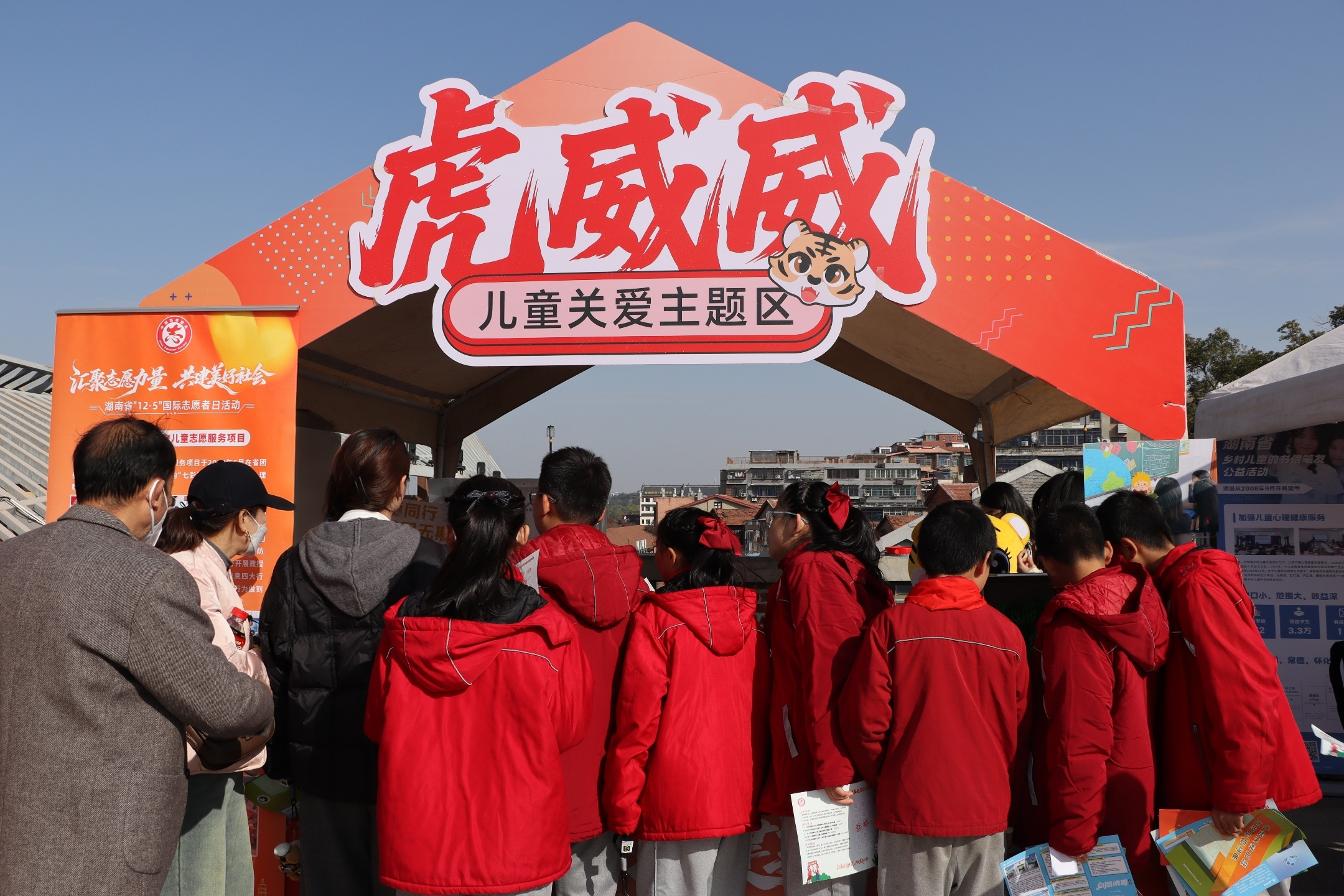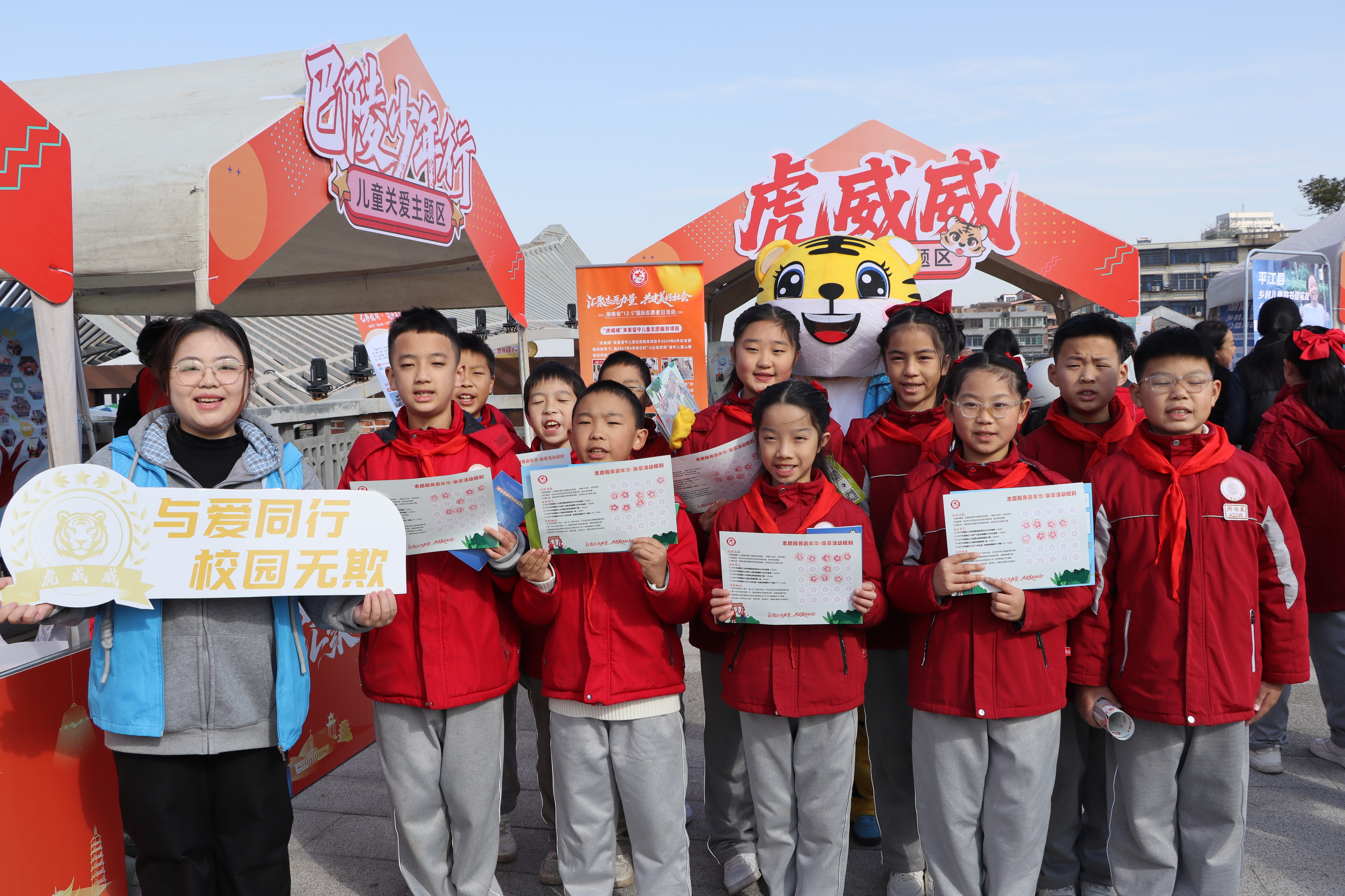 活动现场,“虎威威”志愿服务团队通过展板展示、照片讲解和互动体验等形式,集中呈现了团队自改革创新以来在预防留守儿童校园欺凌的志愿服务项目成果。展位前人头攒动,“虎威威”IP人偶吸引不少参会嘉宾与市民驻足咨询,团队志愿者们热情介绍项目细节,分享志愿故事,现场氛围热烈。其间,谢卫江、陈楚雪一行察看了“虎威威”志愿服务团队展位,并对团队成员致以诚挚的问候与肯定。