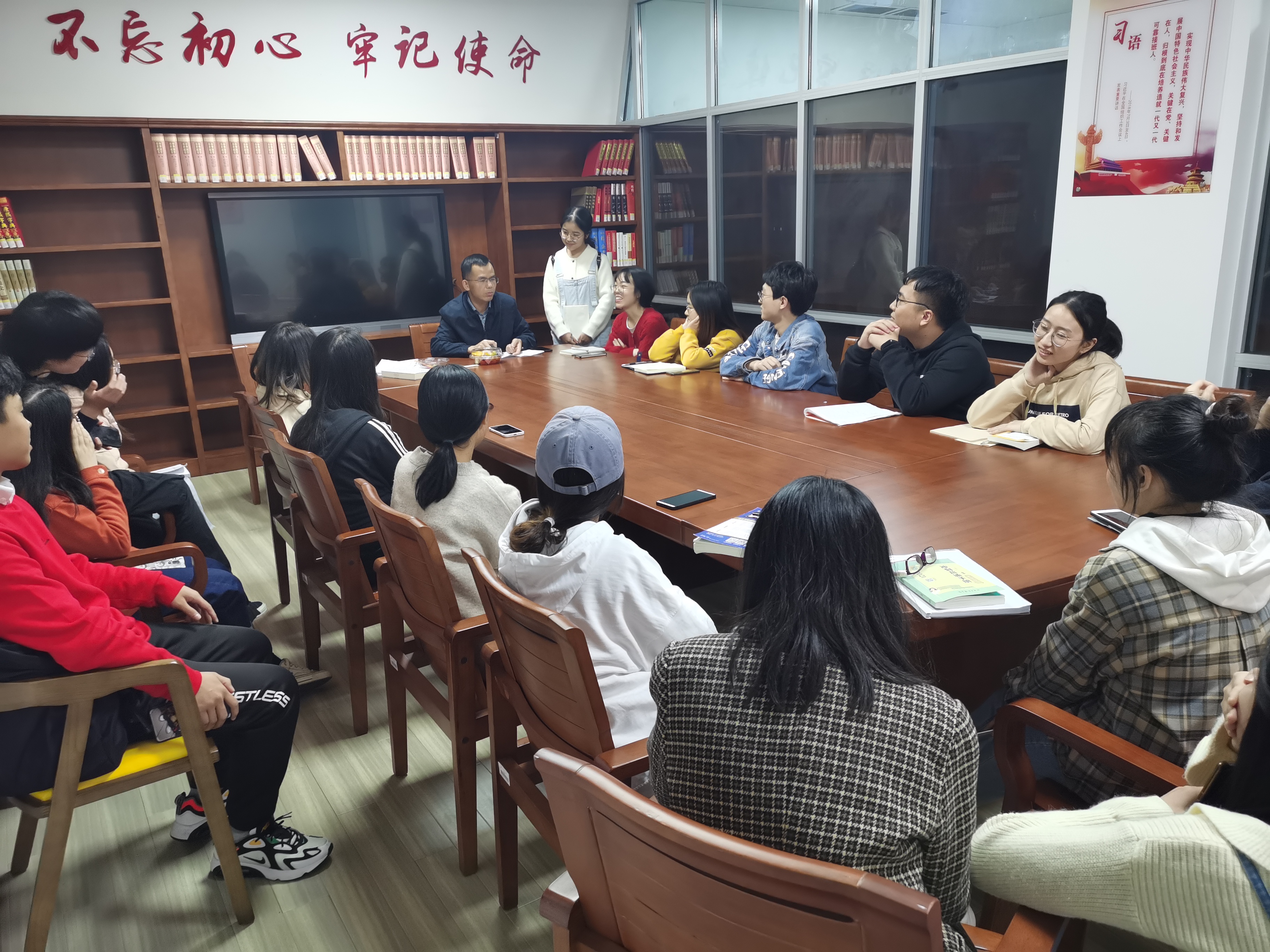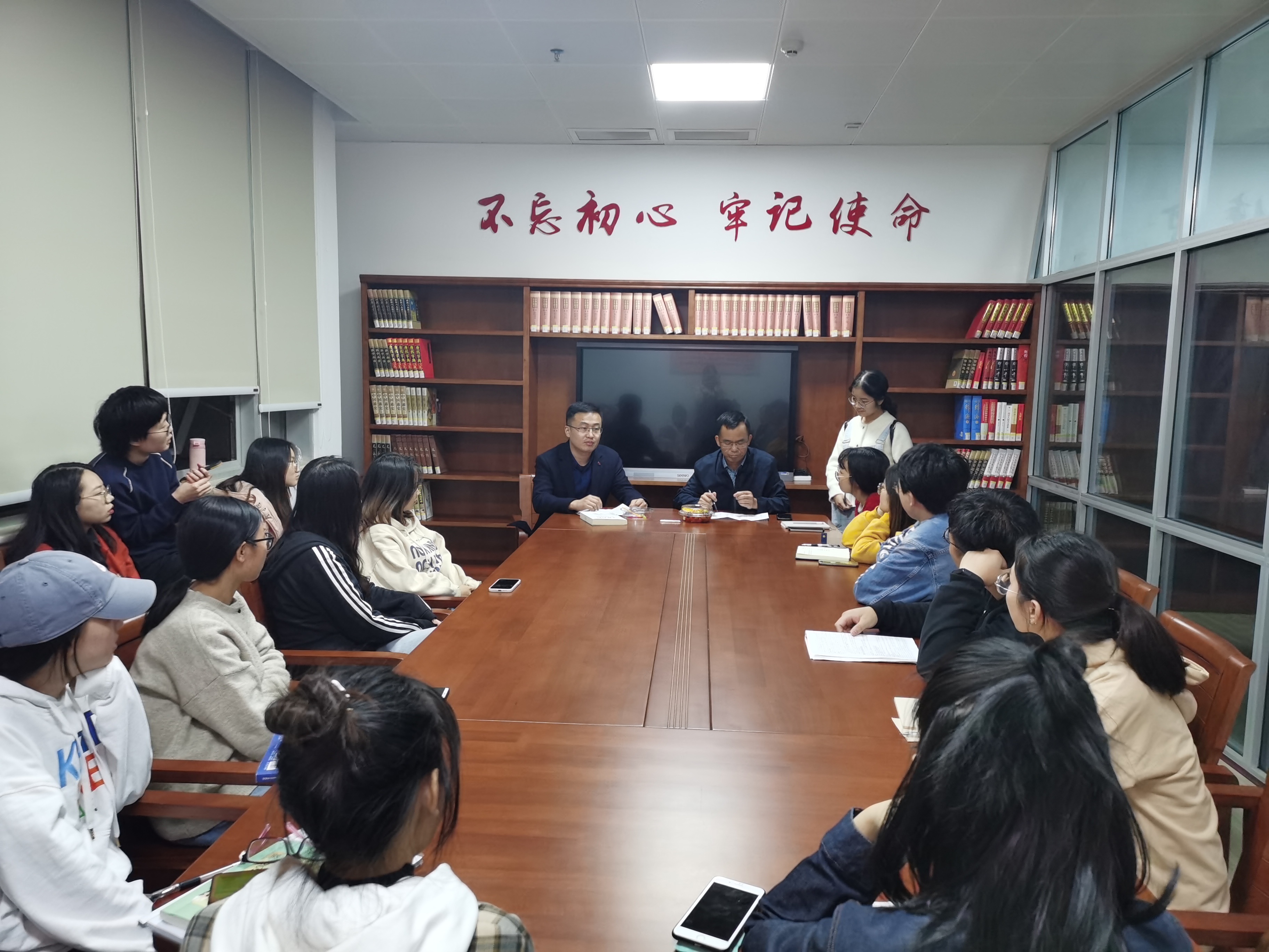 为帮助2017级备考会计学、会计硕士相关方向的同学们充分做好备考复习,再次审慎分析备考目标选择。10月28日晚7:20—9:00,邀请了公司会计硕士学位点负责人湛忠灿教授与17名同学在图书馆红色书屋研讨室一起交流座谈。