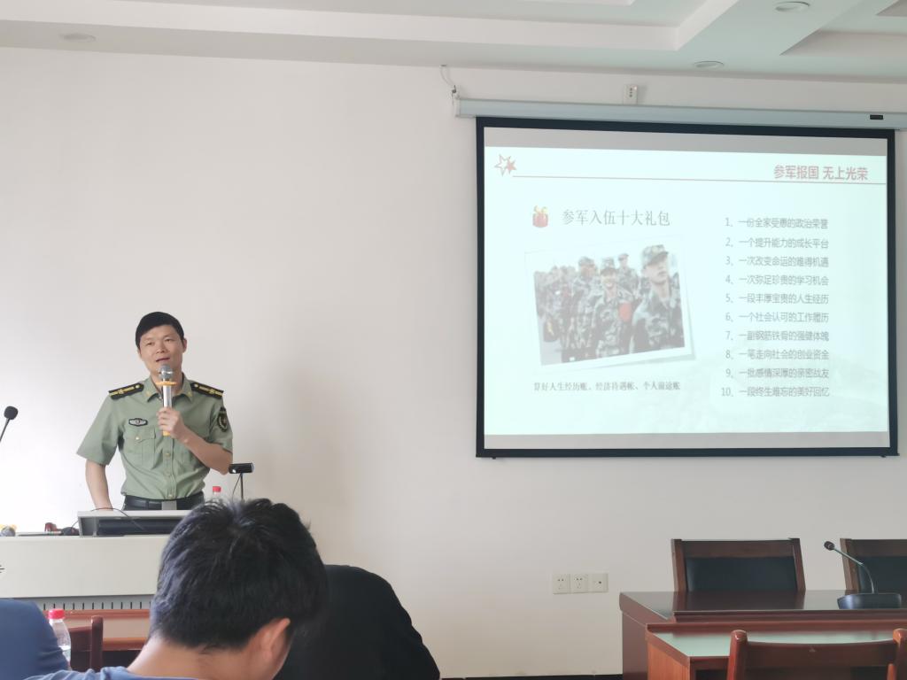 为深入做好2021届高校毕业生应征入伍动员,精准宣讲好、传达好国家对于高校老员工毕业生应征、从军发展的政策办法,帮助公司毕业生充分理解应征入伍条件、程序和从军发展前景,鼓励优秀大学毕业生积极应征入伍,勇于投身祖国的伟大国防事业和实践自己的军旅青春。