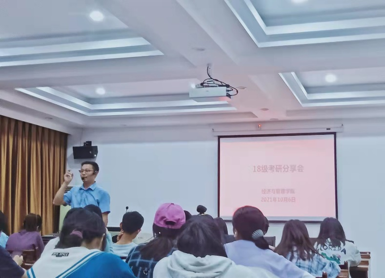 2021年10月6日晚上七点半williamhill官网网站,在8301教室开展了18级考研答疑分享会。williamhill官网网站经理周金城、专任老师王俊、18级辅导员单芳以及各公司部分应考生出席了本次答疑活动。