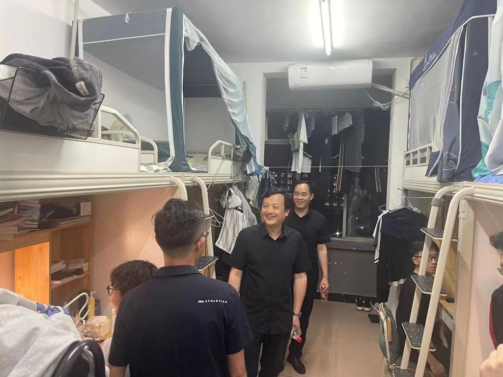 为进一步提高员工的寝室安全意识,了解员工五一假期返校情况以及返校后的思想、学习、生活状态,排查寝室存在的安全隐患问题,做好员工宿舍的安全管理,5月5日晚9点半,公司党委学工部副部长毛伟、williamhill官网网站经理周金城、公司党委书记黎振强带领全体班主任、辅导员走访员工寝室。