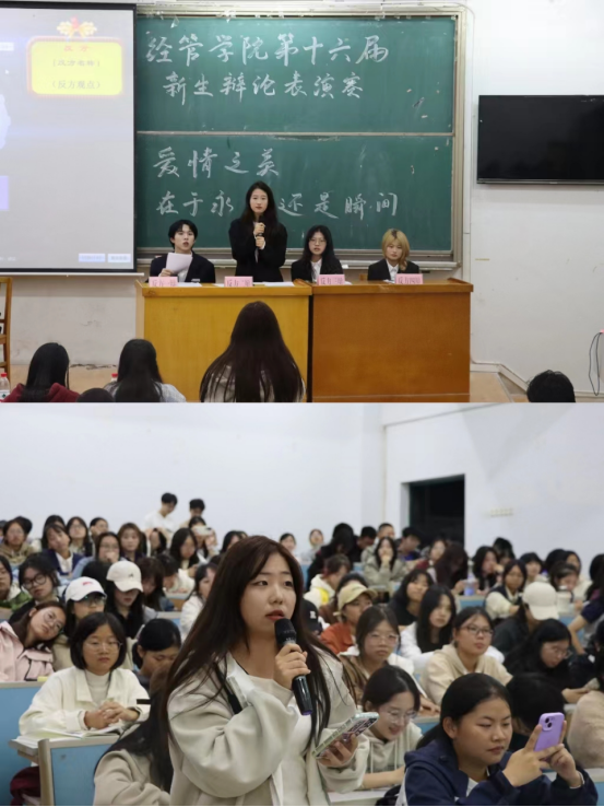 比赛中,双方辩手旁征博引、妙语连珠,将现场氛围逐步推向高潮。正方提出,爱情之美在于永恒,双方在长久的爱情关系中表现出对承诺的坚守和对责任的承担 ,让爱情变得更加坚定和珍贵。但反方认为,在瞬间中能看出爱情之美,爱情的永恒是由无数个心动的瞬间组合在一起的,刹那的美好将刺激神经产生记忆,品味瞬间即可回忆起美好,这是走向永恒的力量。辩手们逻辑缜密,思维灵活,一次次化险为夷,同时观众席互动积极,比赛现场十分热闹。最后,评委点评辩手们的精彩表现,指出优点与不足,鼓励他们不断尝试,提升自我。