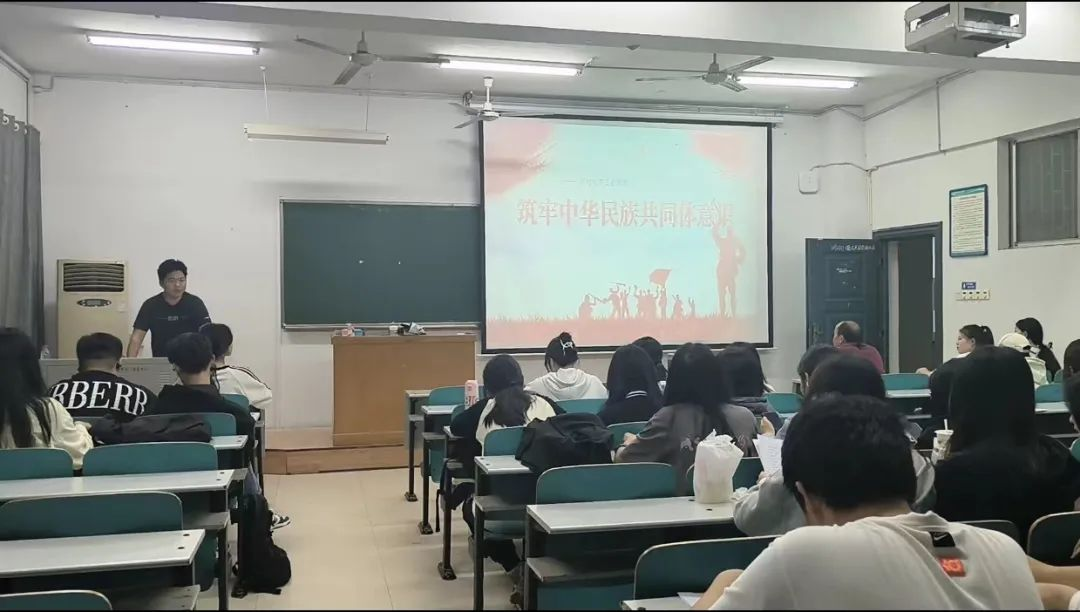 为激发广大同学的爱国热情,树立中华民族共同体意识,筑牢中华民族共同体,10月30日晚上19点,23级人力资源管理专业的全体同学在八栋教学楼8504教室开展了中华民族共同体主题班会,本次班会由班长谭安琪、团支书杨庭隆主持,班主任刘清泉出席。