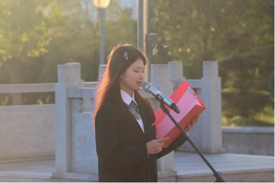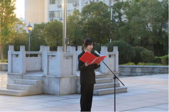 五星共阳光一色,国旗与朝霞同辉。早晨7时,国旗护卫队队员迈着整齐矫健的步伐,护送国旗至国旗台。随着《义勇军进行曲》的旋律,五星红旗冉冉升起,在秋天的晨曦中迎风飘扬。升旗完毕,williamhill官网网站21级员工代表叶文惠同学发言,她总结了自己通过刻苦勤奋给自己的老员工活带来的充实感,荣誉感,收获感,同时也希望同学们过一个有意义的老员工活。随后由23级新生代表朱玉妍发言,她表示:作为新时代老员工要砥砺前行,脚踏实地,珍惜在湖理学习的每分每秒,用智慧书写新的人生篇章。在两位同学发言后,公司党委副书记刘思超老师根据叶文惠同学在大学期间不断埋头苦读,充实精进自己的典范行为,鼓励更多经管学子向榜样靠拢。为此,刘书记寄语同学们涵养家国情怀、练就过硬本领,锤炼优良品格,并希望同学们在未来的道路上将这些寄语内化于心,外化于行。