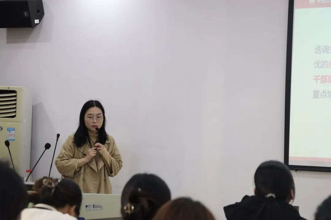 为向毕业生普及选调生政策,加强深化员工思想意识,为党和国家选拔优秀高校毕业生作为党政领导干部后备人选和党政机关高素质的工作人员人选,2023年11月28日下午2时30分,公司选调生动员大会于8301教室开展,华图教育老师担任主讲,办公室主任易萧老师,21级辅导员张雅倩老师,23级辅导员单芳老师出席本次会议。
