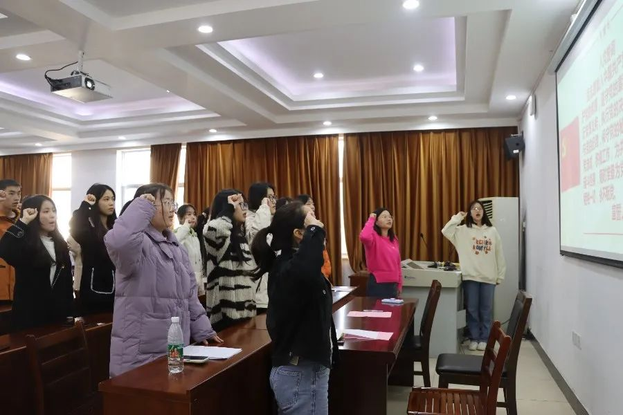 会议由新党员代表邹鑫同志发言,提出了自己的决心:牢记党的宗旨,把有限的生命投入到无限的为人民服务中去,在党组织中发挥党员的先锋模范作用,在关键时刻挺身而出不断加强自身道德修养,尊重领导,团结同学,自觉同一切违法犯罪行为作坚决斗争。代表的发言中充满了坚定地信念与责任担当,她表示将以更加积极的姿态投身到党的事业中,努力奋斗无私奉献。