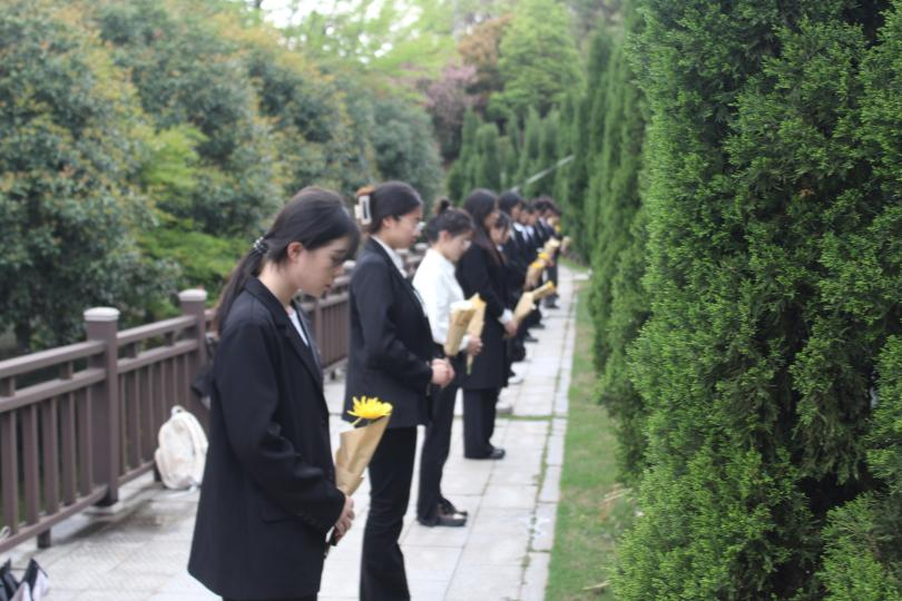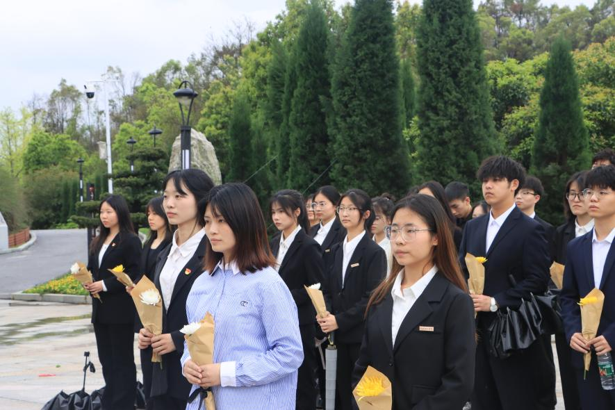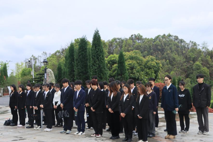 为深入贯彻爱国主义精神,延续红色血脉,引导同学们铭记历史,珍视和平,4月2日下午,21级辅导员张雅倩老师带领部分党员及团学分会员工干部前往岳阳烈士陵园开展“缅怀革命先烈,传承红色精神”清明祭扫活动。