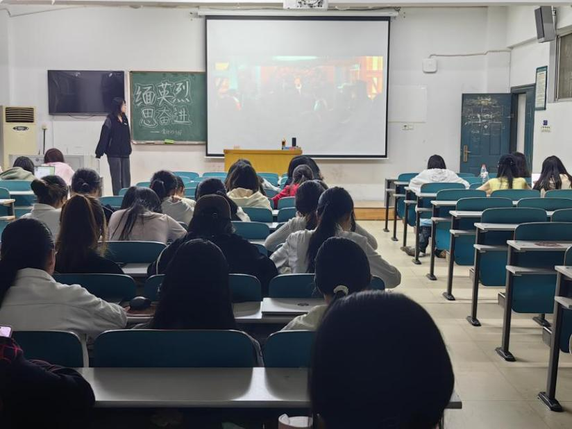 默哀结束后,张雅倩老师带领团学成员和党员代表上前,向烈士纪念碑敬献花束,表达对他们的崇高敬意和衷心感激。