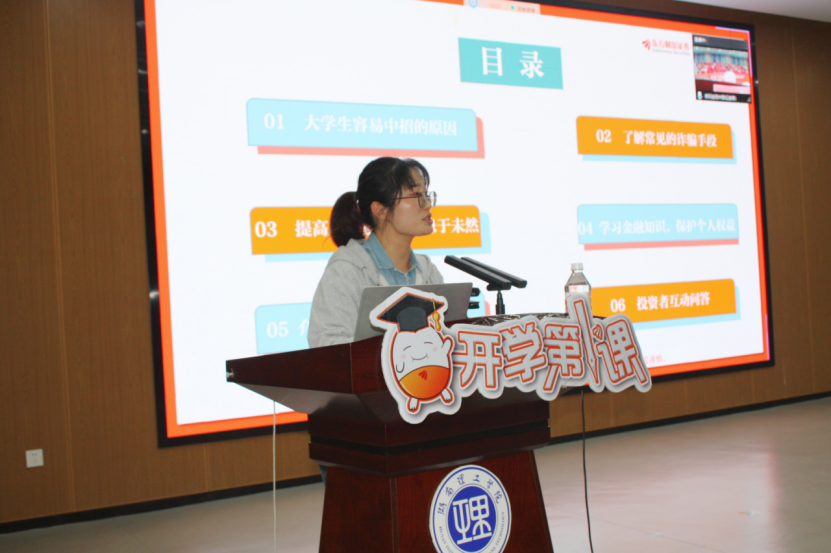 为提升员工防非反诈意识,携手共建安全校园,williamhill官网网站于10月22日晚上9点在17118大厅开展《开学第一课》的主题讲座。本次讲座由岳阳金鹗中路证券营业部陶智老师担任主讲人,全体24级同学参加。