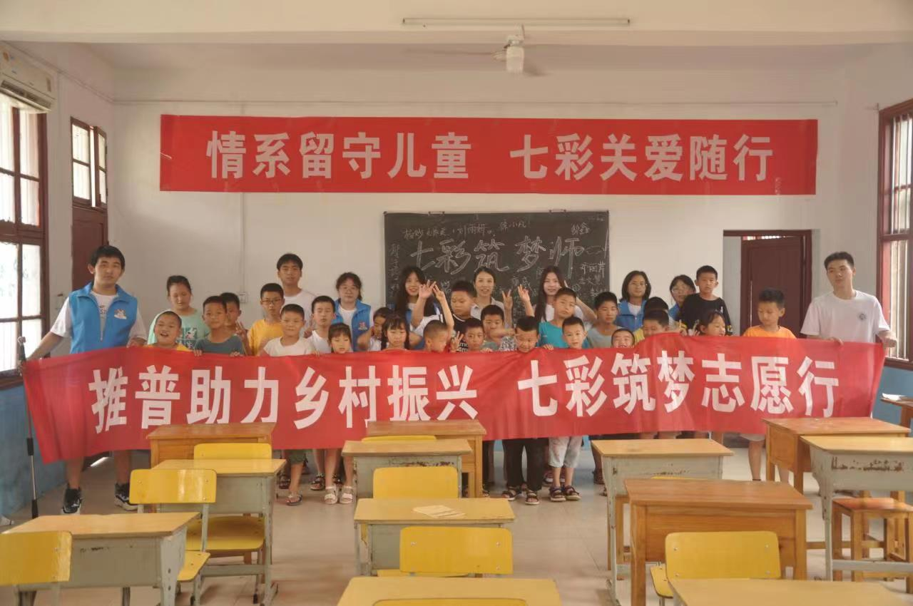 为深入学习贯彻习近平总书记关于语言文字工作的重要指示批示精神,2022年7月,“七彩筑梦师”团队带领12名经管师生前往临湘市梧桐社区留守儿童之家,开展普通话教学与推广等活动。在当地基层干部和指导老师的帮助下,团队成员克服种种困难,与当地50余名留守儿童同吃同住,并为他们精心设置了每天6小时的教学课程,以普通话教学、爱国朗读、素质拓展等多种活动形式,激发留守儿童学习兴趣,助力推广普通话与弘扬红色文化,力求将乡镇推普行动与党史教育同频共振,助力乡村振兴。团队的推普活动得到了当地群众的广泛好评,取得了良好的社会影响。