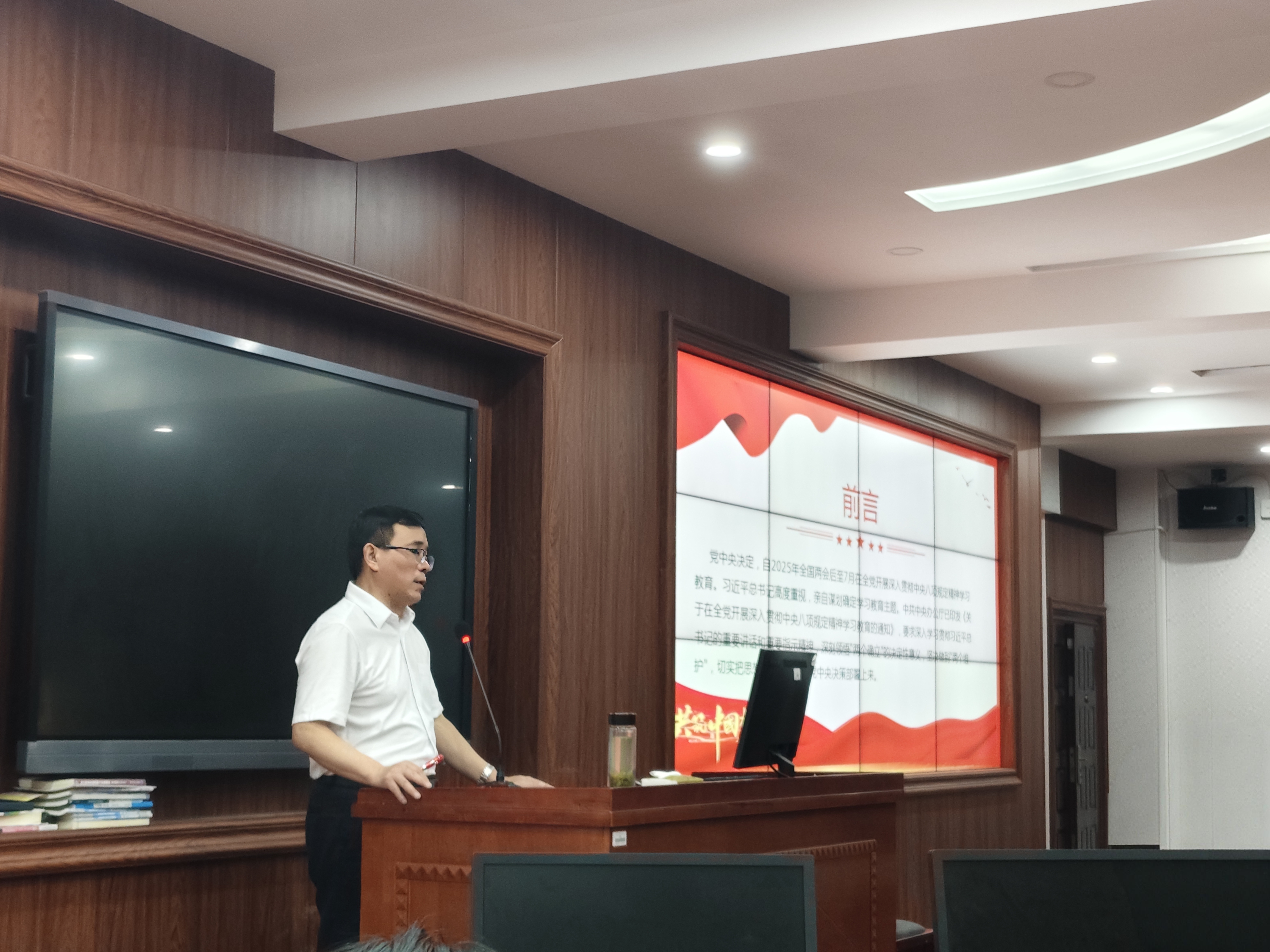 谢贵辉书记从中央八项规定及其实施细则开展讲解,首先介绍了中央八项规定出台的背景和时代意义,强调党改进作风,从严治党的坚定决心;再从“改进调查研究”到“厉行勤俭节约”,对中央八项规定精神的核心要义与具体内容进行了细致阐述,并结合典型案例,深刻剖析违规行为产生的原因、造成的危害以及应吸取的教训,警示入党积极分子要时刻保持头脑清醒,严格遵守党的纪律和规矩。