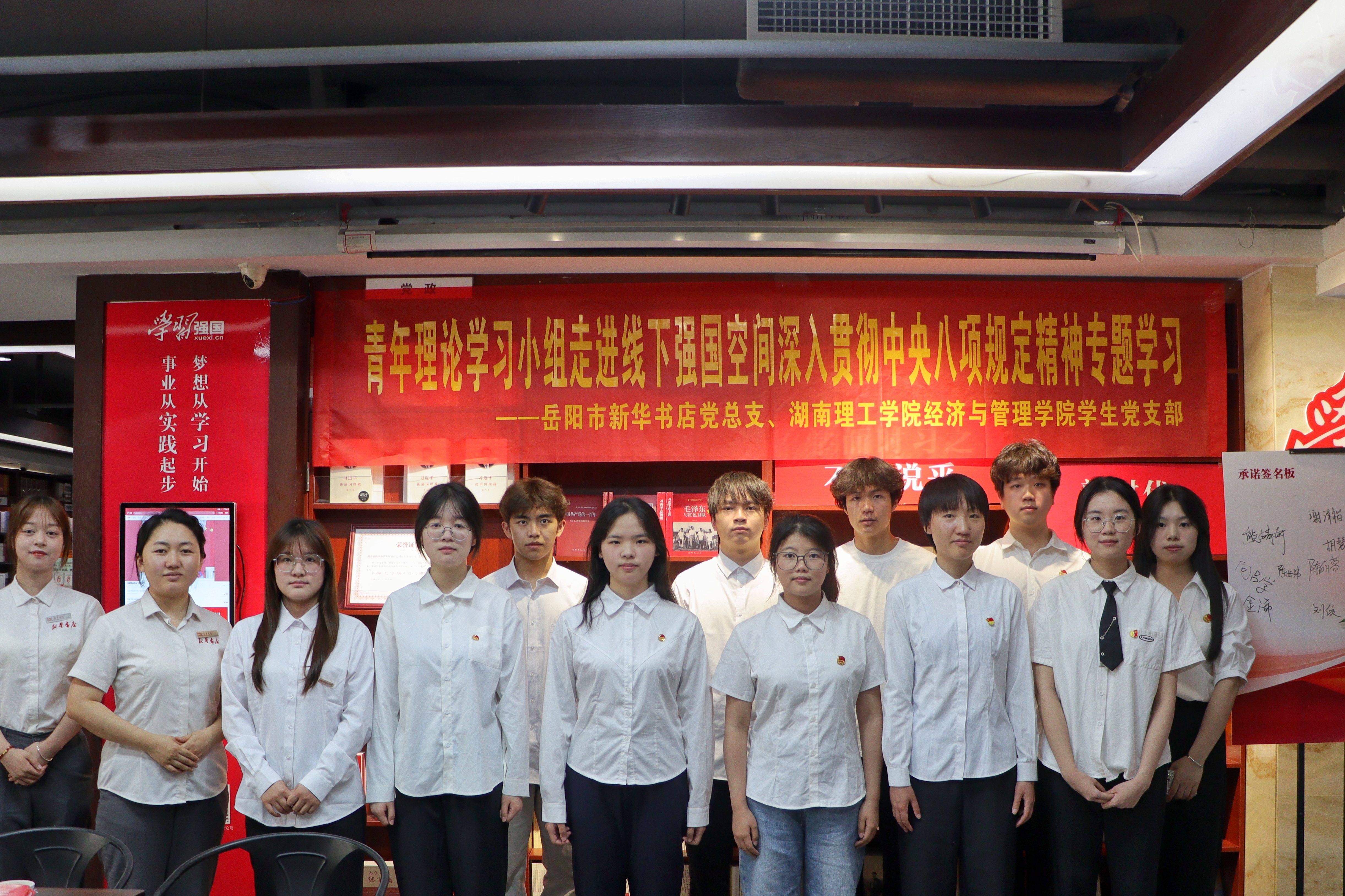 为充分发挥青年员工党员、干部模范带头作用,引导青年员工深刻领会中央八项规定精神的丰富内涵和实践要求,5月13日下午,williamhill官网网站员工党员、干部走进岳阳市新华书店“学习强国”线下体验空间,开展“深入贯彻中央八项规定精神”专题学习活动。