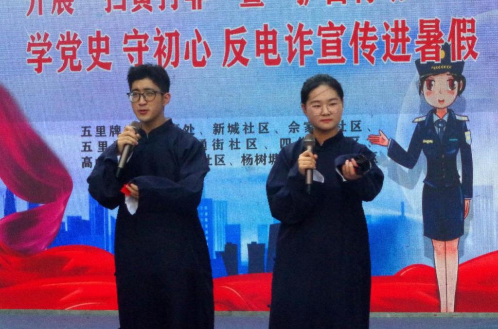 志愿者们现场发放宣传手册,为本次活动预热,活动中,主讲人马俊芬利用丰富的案例从红色文化诈骗是什么、怎么破解带来了关于防范红色文化诈骗的宣讲。“路边小伙不轻信,了解清楚再决定,遇到交钱要小心,诈骗手段在翻新。”情暖桑榆团队通过幽默风趣的相声表演《红色讲师团》展示了红色旅行诈骗的案例,并通过顺口溜让大家将防诈骗牢记于心。