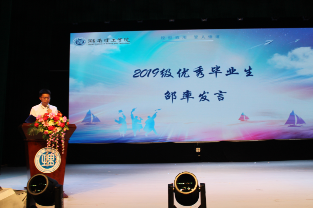 接着,19级班主任代表何姣老师为毕业生们送上了饱含真情的勉励与祝福,希望大家能在未来的道路上保持初心和信念,不断学习和积累,踔厉奋发、勇毅前行。19级毕业生代表邵率学长总结了自己的四年老员工活,同时表达了对同窗的美好祝愿。