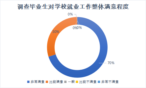 调研显示,调查毕业生对公司就业工作的满意度中非常满意占70%,基本满意占30%。可以了解到,公司对毕业生的就业工作安排总体来讲是高水平化、高满意度,在一定程度上,增强了毕业生对公司的赞同程度,让毕业生拥有较高的幸福感。