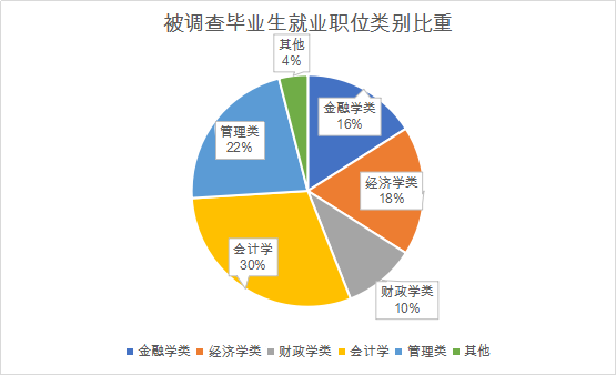 通过数据统计,初步了解到公司被调查毕业生目前的就业岗位多偏向于经济管理类,其他类占比较少,其中,会计学和管理学类职位相比其他岗位,权重比例较大。