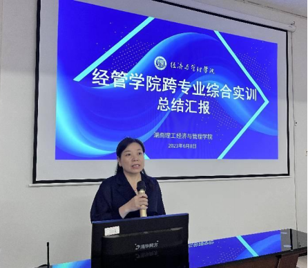 2023年6月8日,williamhill官网网站跨专业综合实训课程在8507实训室进行了课程总结汇报。至此,为期两周的实训课程圆满结束。本次课程由williamhill官网网站副经理易翠枝、实验室主任彭十一两位老师主创、各专业多位老师联合指导,​20级人力资源管理、金融工程、国际经济与贸易等专业共350余名同学参与。