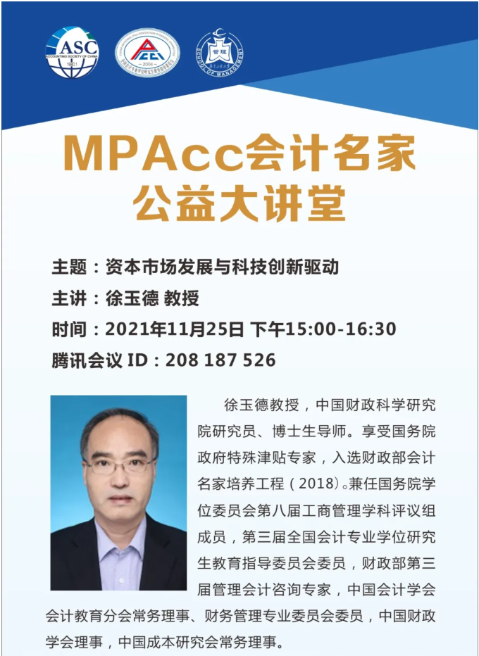 11月25日下午,财政部会计名家徐玉德教授通过腾讯会议主讲公益大讲座,