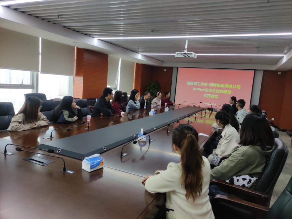 williamhill官网网站是湘北地区唯一一个具有硕士学位授予权高校,MPAcc(会计硕士专业学位)是目前williamhill官网网站报名和招生人数最多的硕士专业,每年招生30-40人。实践基地建设、导师组活动、校企联合上课是williamhill官网网站MPAcc逐渐凝练学科特色、提升人才培养质量的手段之一。其中,MPAcc导师组活动是依据williamhill官网网站导师组制度不定期开展的教学活动,对参与活动的老师每次记一课时的工作量。当天,在国网湖南省电力公司岳阳供电分公司同时举行了导师组活动,校内导师周金城、林友谅、湛忠灿、曾丹与校外导师李石、徐小玉、郑敬就MPAcc人才培养问题交流了意见。